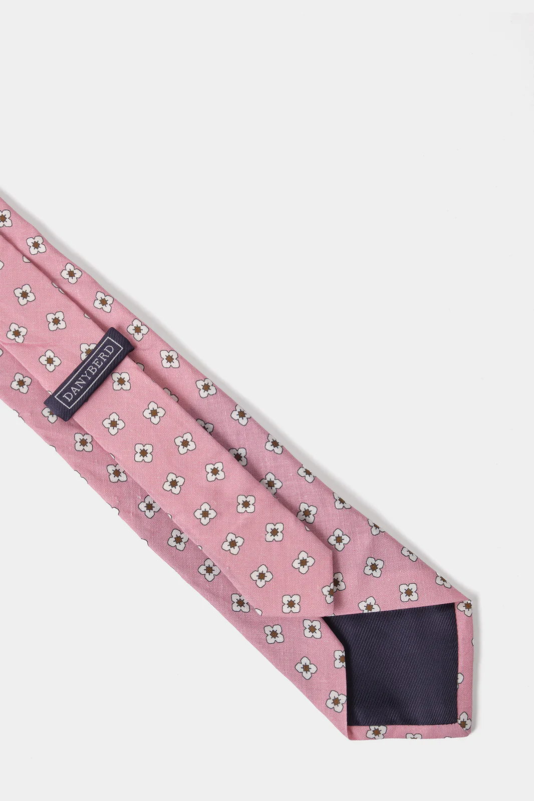 Cravate en soie et lin – Rose à motifs fleurs blanches et marron
