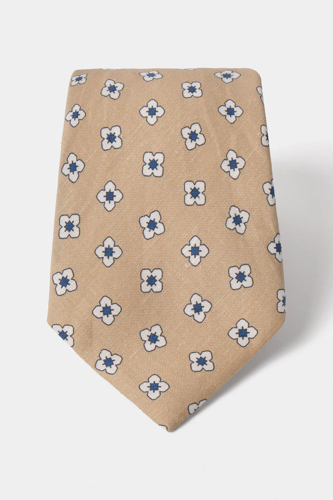 Cravate en soie et lin – Sable à motifs fleurs blanches et bleues