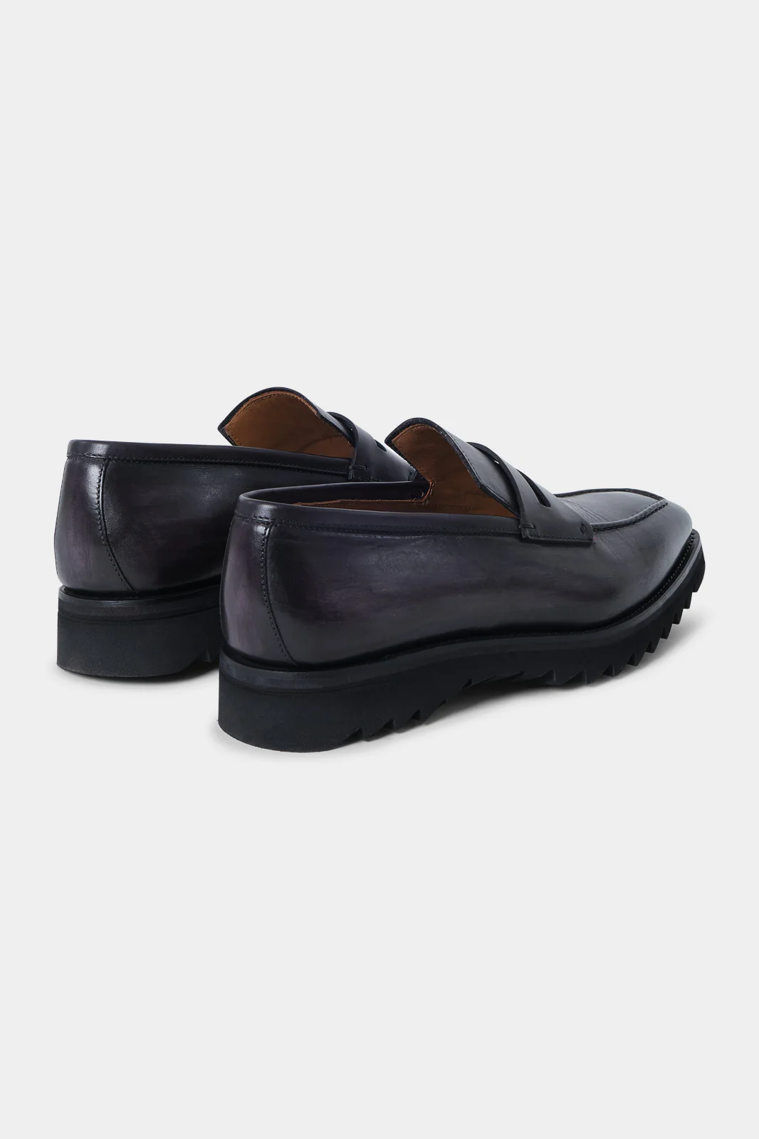 Mocassins en cuir patiné avec semelle crantée - Gris