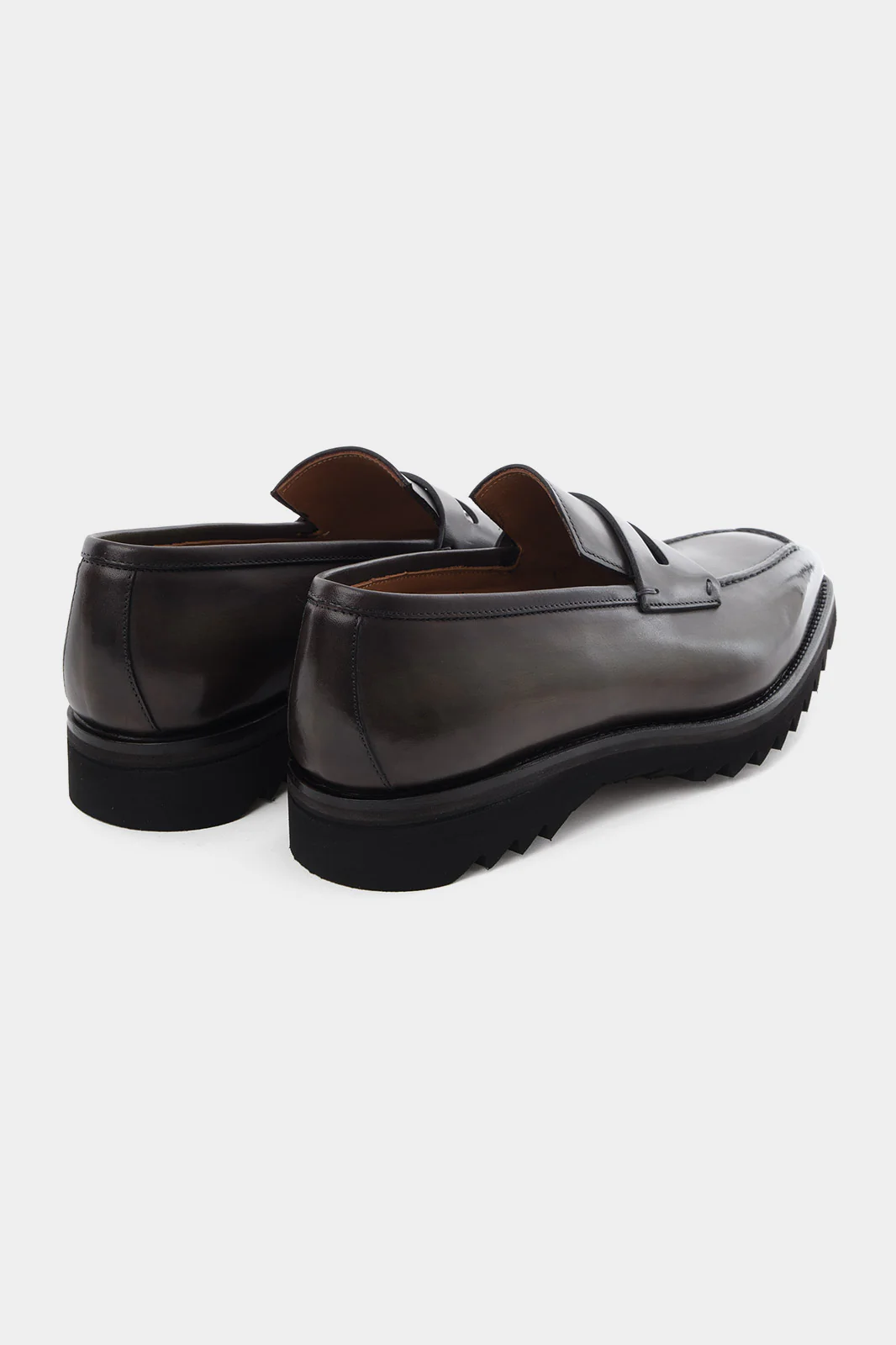 Mocassins en cuir patiné avec semelle crantée - Kaki