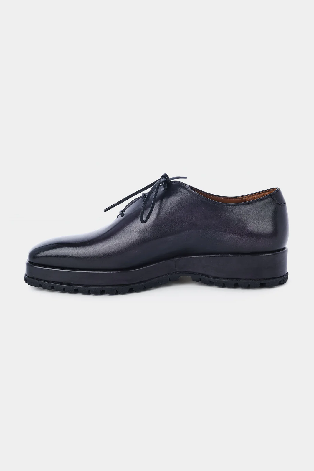 Découvrez nos Richelieu à lacets en cuir patiné gris, dotés d'une semelle épaisse, compensée et antidérapante en gomme pour un confort absolu et une adhérence optimale grâce au système Vibram. Leur bout carré-arrondi et leur style original en font un intemporel à porter avec tout, du jean au costume en passant par le joggpant.